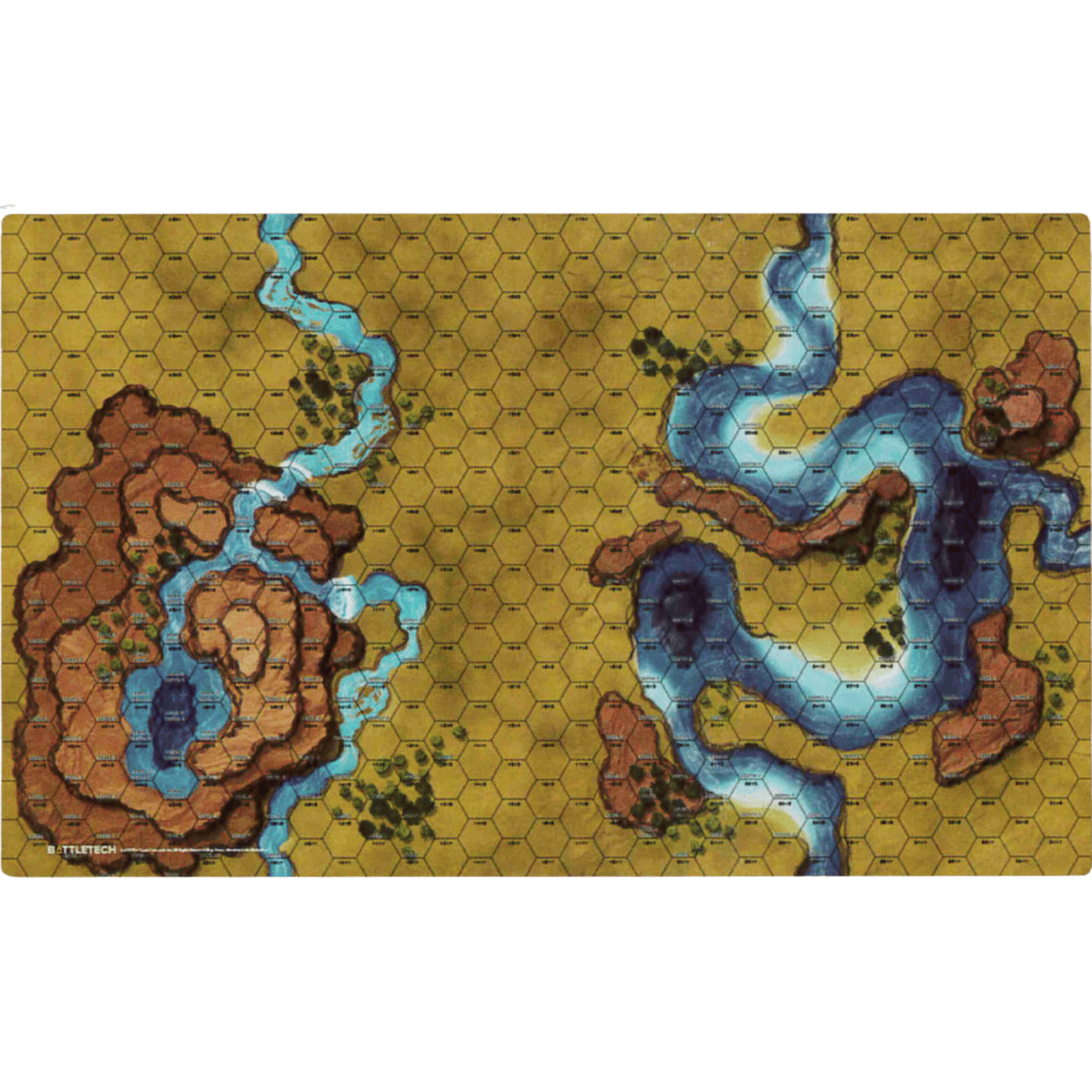 Roll out high-quality neoprene maps on your BattleTech gaming table, with these fantastic new savannah maps! Each map is 34" x 22", the perfect "two-map" size for most games. The maps are high-resolution with great color quality, making them some of the most beautiful and durable BattleTech maps ever produced. The neoprene is also thin for ease of storage, and double-sided for versatility.