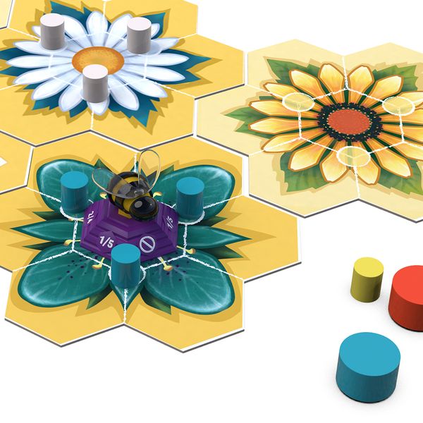 In Beez, players compete to optimize their flight plans to secure nectar for their hive. Be careful of the other bees as you will compete with them over a set of public and private scoring goals. The challenge in planning and storing the nectar will make your brain buzz!