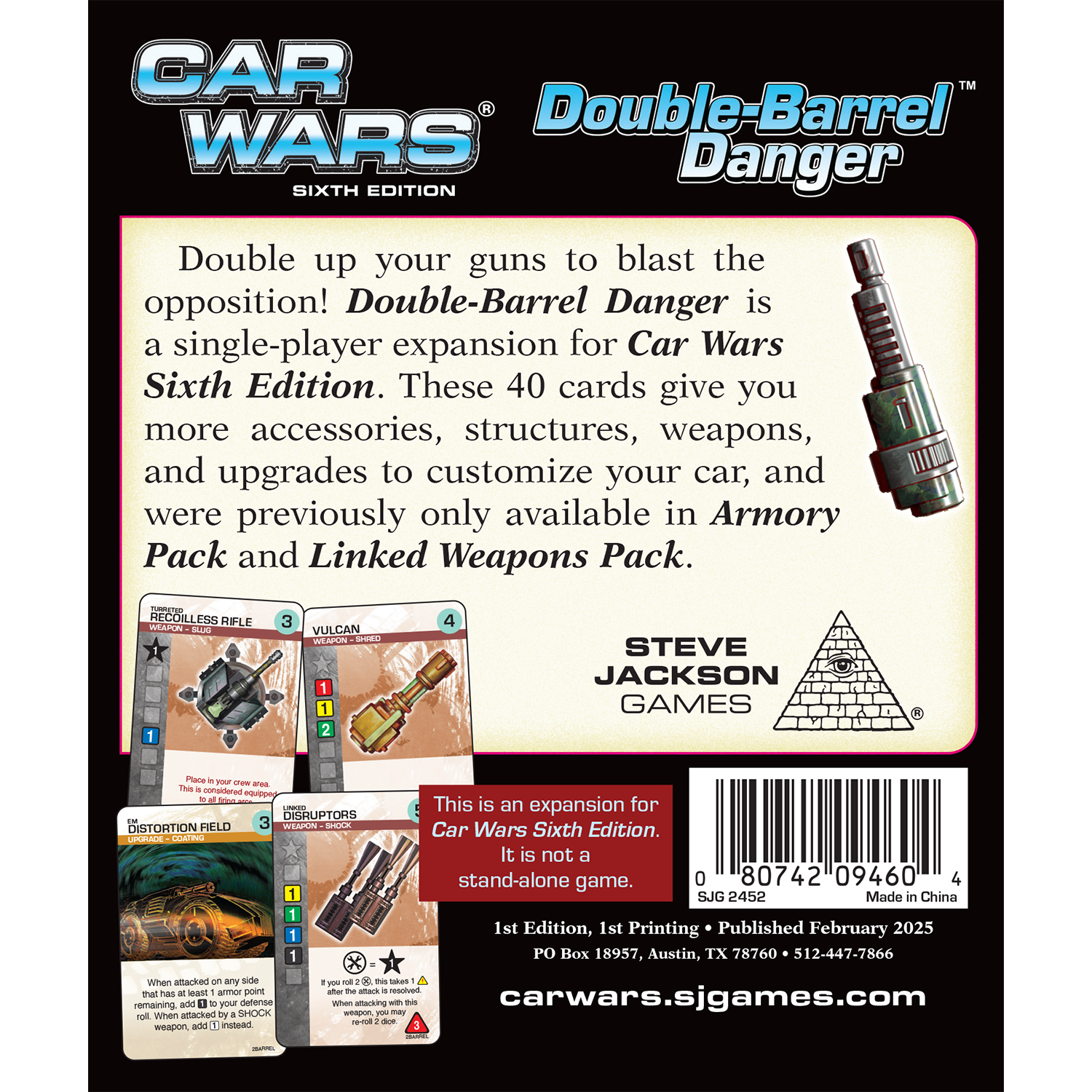 Double-Barrel Danger brings you 40 cards that give you more accessories, structures, weapons, and upgrades to further customize your car.