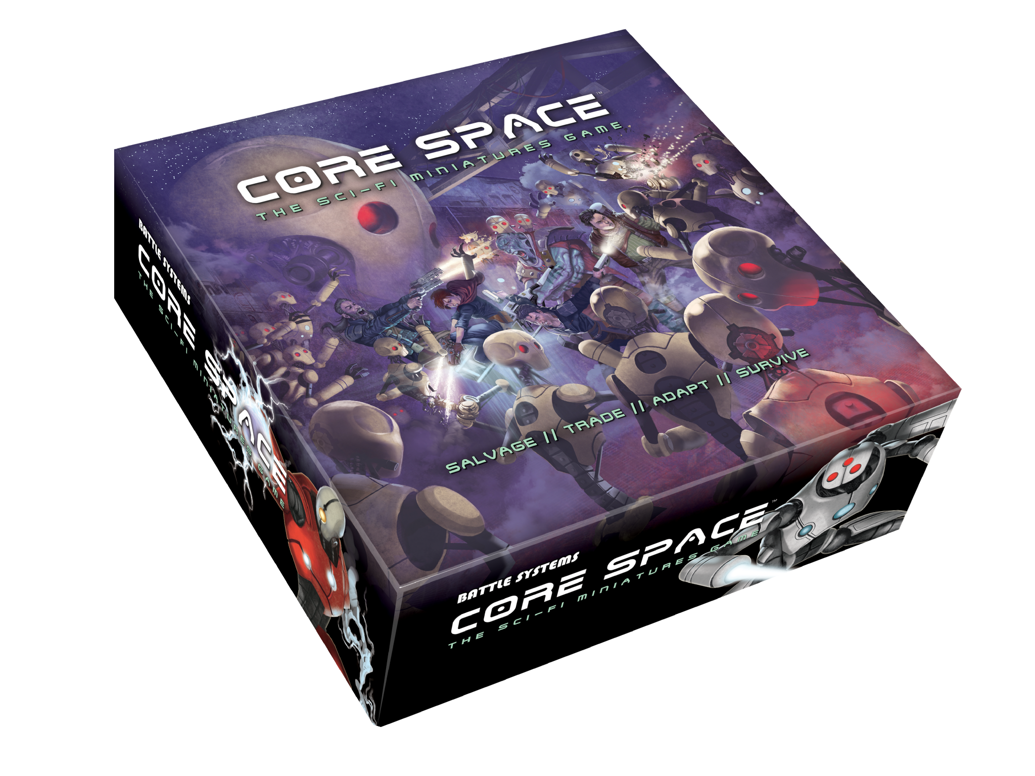 Core Space is a science fiction miniatures board game for 1-6 players. Each player takes control of a band of Traders trying to make a living in a dangerous galaxy, all the while hunted by the Purge, a semi-sentient race of humanoid machines whose sole task is to harvest worlds. It can be played competitively or co-operatively, and missions can be linked with a detailed campaign system.