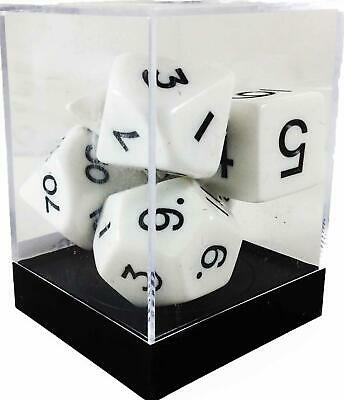 7 Opaque Dice set - Size is based on the D6 - Includes one of each of the following d4, d6, d8, d10, dt10 (percentile), d12 and d20. - Blue opaque with white numbers - Dice are approximately 24mm - 15/16in in size.