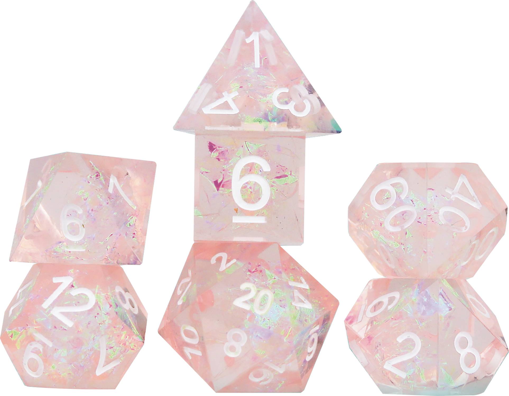 Step into the mystical realm of fairies with our fairy dice set, crafted from translucent resin, imbued with shimmering glitter and iridescent foil to transport you to an enchanting world.