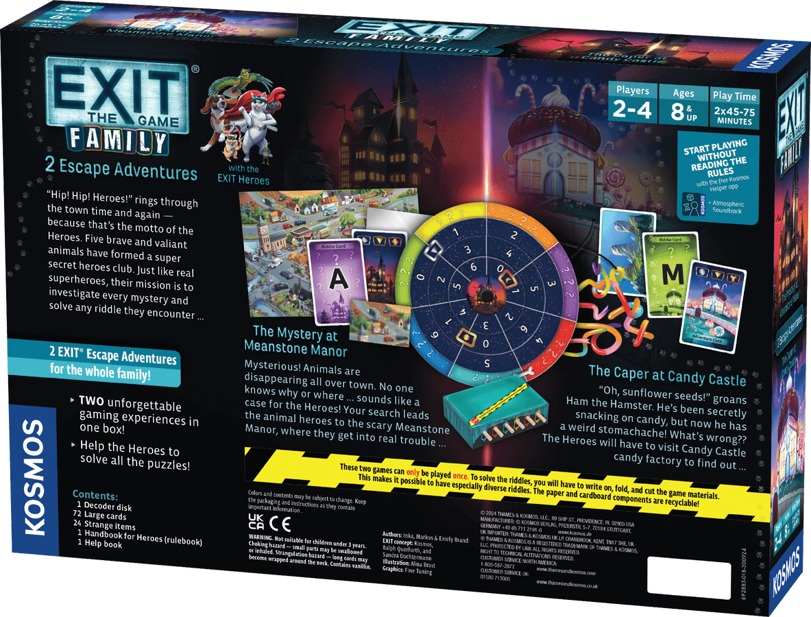A cool team of animal superheroes has formed a secret club in EXIT: The Mystery at Meanstone Manor/The Caper at Candy Castle in order to solve a pair of puzzly adventures.