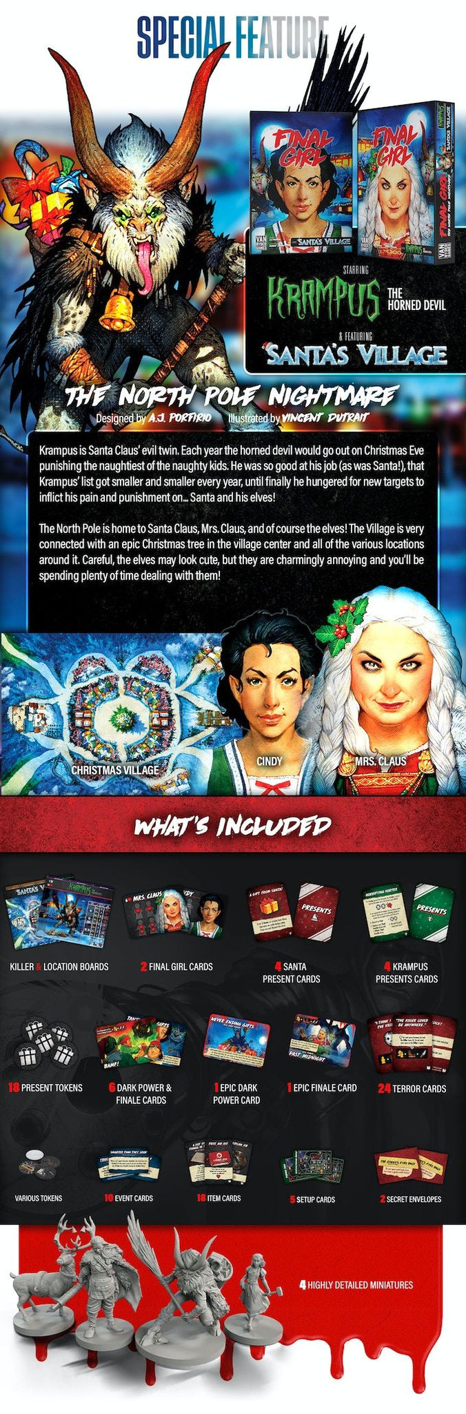 Krampus is Santa Claus' evil twin. Each year the horned devil would go out on Christmas Even punishing the naughtiest of the naughty kids. He was so good at his job (as was Santa!), that Krampus' list got smaller and smaller every year, until finally he hungered for new targets to inflict his pain and punishment on... Santa and his elves!