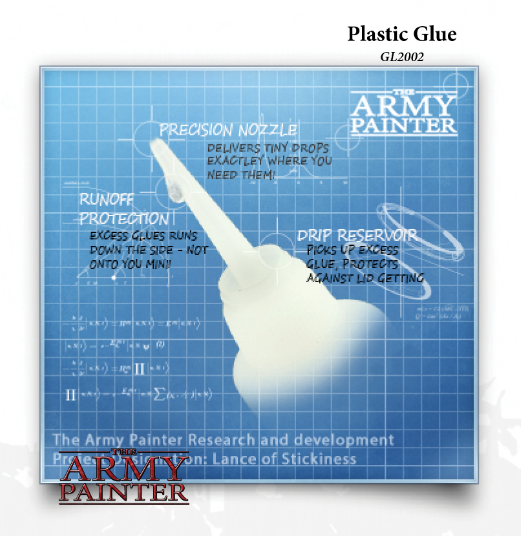 With the precision nozzle of this pot, it is very easy to apply ultra small dots of plastic glue without running and thus ruining the details on the miniature. The viscosity (thickness) of the glue is exactly right for wargaming models and miniatures as it is not too thin and made especially for assembling regiments of plastic models. Bonds light witin seconds so no extra handling/correction is needed once the pieces are added together, increasing your speed and precision. Army sized 24gr. of Polystyrene Cement.