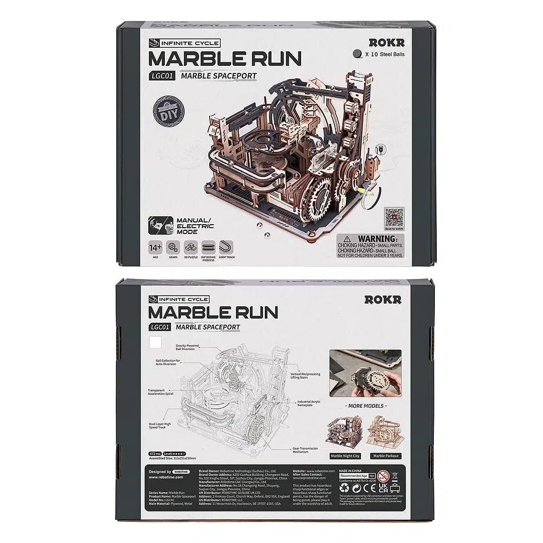 The ROKR Marbel Spaceport is the first motorized ROKR Marble Run ⚙️. With 472 pieces this Marble Run is a fun and challenging project by itself, but the magic doesn’t stop there; the ROKR Marble Spaceport can be combined with the ROKR Marble Night City Marble Run to make a super and fantastic marble maze ✨.