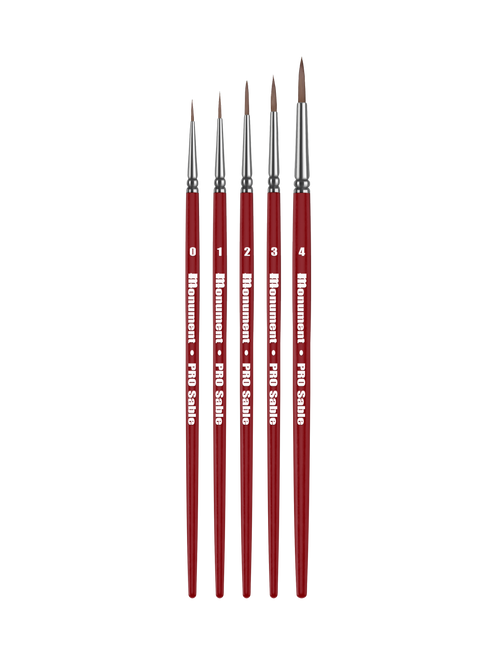 The next generation of Monument brushes is here! Our PRO Sables are made from the finest Sable and designed with a shape that will load a sizable amount of paint, while delivering perfect control with every stroke. Great ??â????snap??â???? and very fine points to put the finishing details on your models. Great for use with acrylics as well as other thin mediums, PRO Sables will allow you to blend easily and create the finest details at any scale.
