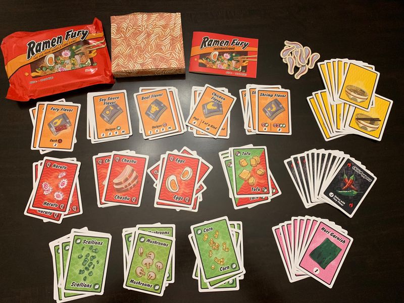 Rush to prepare and slurp up delicious bowls of ramen filled with tasty ingredients in the use-your-noodle card game Ramen Fury. Collect combos of cards to score for different recipes while adding garnishes to boost your points. At the same time, watch out as other players throw spicy chili peppers your way or swipe foods right from your bowls! It's "take that" fun that will have you calling for takeout!