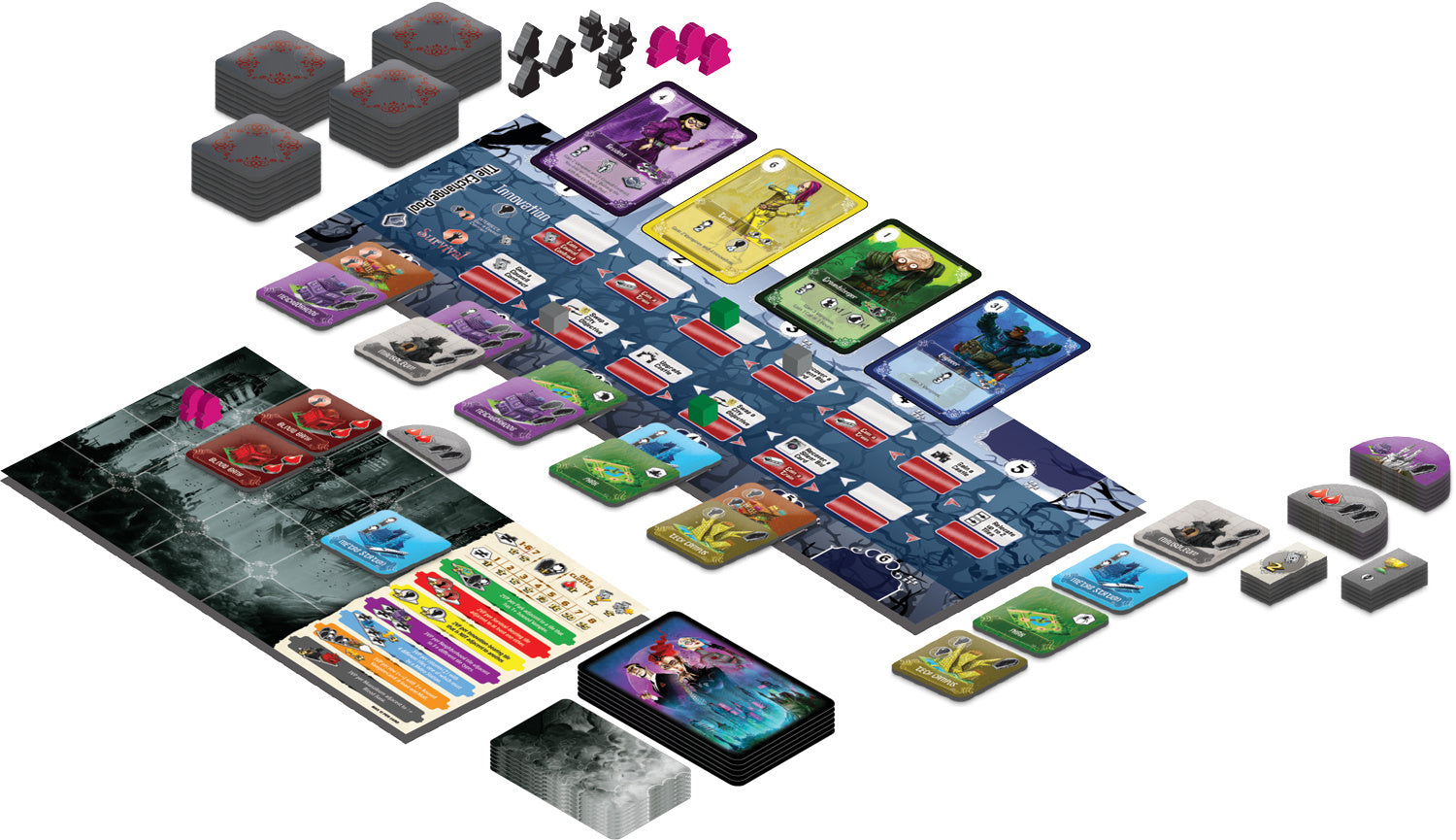 Your specialists also provide special scoring conditions that add exciting variety! Players will also be competing to develop innovations, find artifacts, and build castles and train stations to make their cities even more attractive to the rising vampire population.