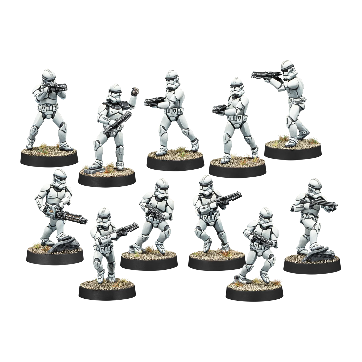The Galactic Republic’s clone troopers are an elite fighting force. Genetically crafted for combat and training as a team since their creation, clone trooper infantry operate as a cohesive fighting unit that is as effective as they are flexible, adapting strategies in the midst of battle and highly proficient with a wide array of weaponry.