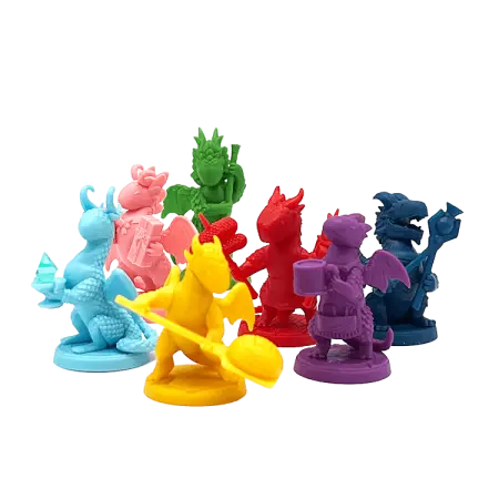 A stunning set of miniatures has been crafted by the dragons of Flamecraft! These seven dragon minis depict specific characters from the game such as Hot Dog, Starburst and Thistle! Each of these fiery friends has incredible detail, with their own bespoke props, such as a freshly baked loaf, a special Flamecraft gem and a spade with a tiny snail friend.