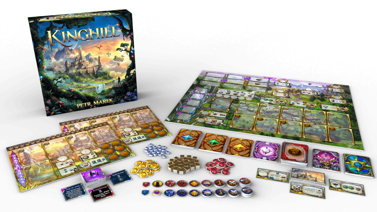 Kinghill fuses the strategy of a worker placement game with the drama and tension of a deck-building card battler to create a fantasy game like no other. Two rival kingdoms are locked in a deadly battle for survival – play on your own or with a friend to determine who’s worthy of the Moonstones’ incredible power! Train your workers, gather valuable resources, and recruit legendary heroes as you muster your forces for battle. Then – when the time’s right – take the fight to their castle! But be careful you don’t leave yourself open for a powerful counterattack… Your decisions unfold over nine turns to produce a rewarding campaign that can be enjoyed in 90 minutes or less.