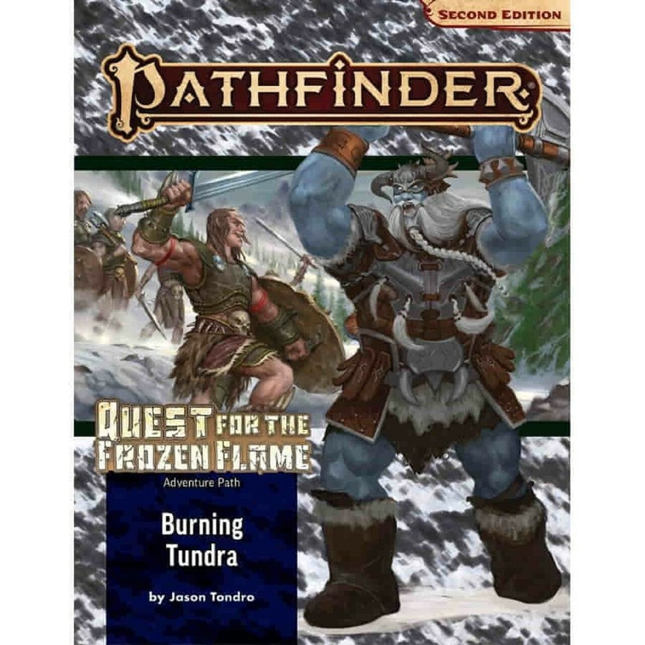 "Broken Tusk Moon" is a Pathfinder adventure for four 1st-level characters. This adventure begins the Quest for the Frozen Flame Adventure Path, a three-part monthly campaign in which the heroes lead a band of nomadic hunter-gatherers across a brutal primordial landscape. This adventure also includes a catalog of the characters' band, the Broken Tusks; new spells, feats, and items perfect for trappers and foragers; and new prehistoric creatures to befriend or bedevil your players.