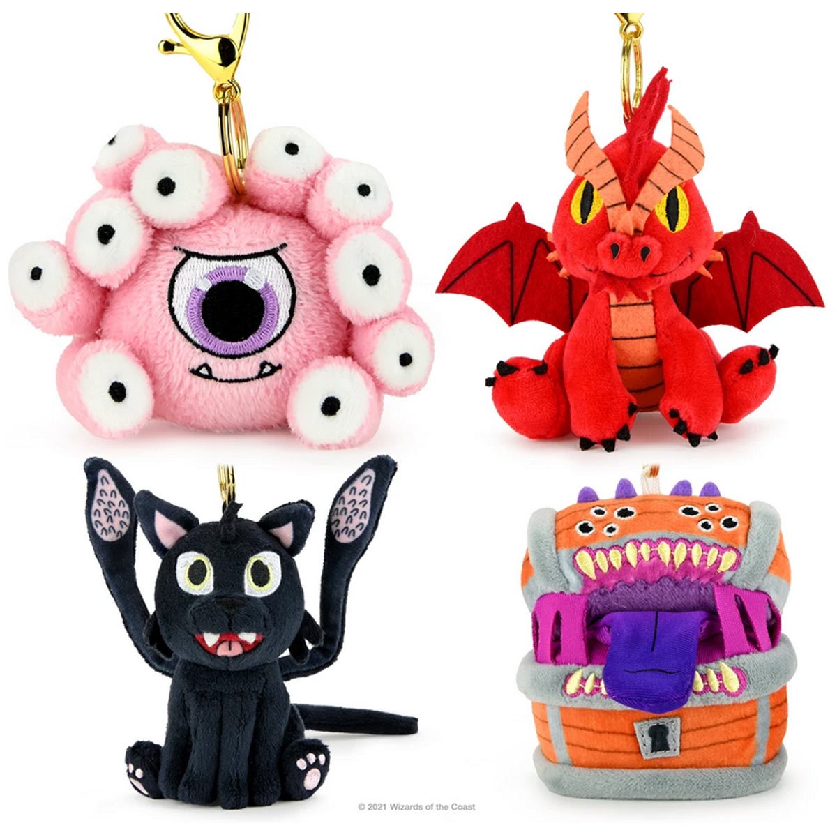 From the rich lore of Dungeons & Dragons, these 3-inch plush charms feature famous monsters made miniature and look great attached to anything. Wave 1 includes Displacer Beast, Mimic, Beholder, and Red Dragon. Which will you get? Roll for initiative and select!