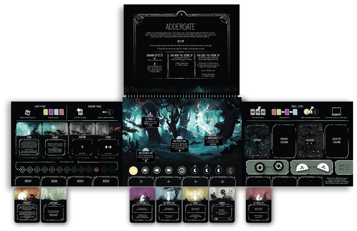 Storyfold: Wildwoods is an innovative solo & narrative adventure board game with beautiful art and an immersive story campaign.