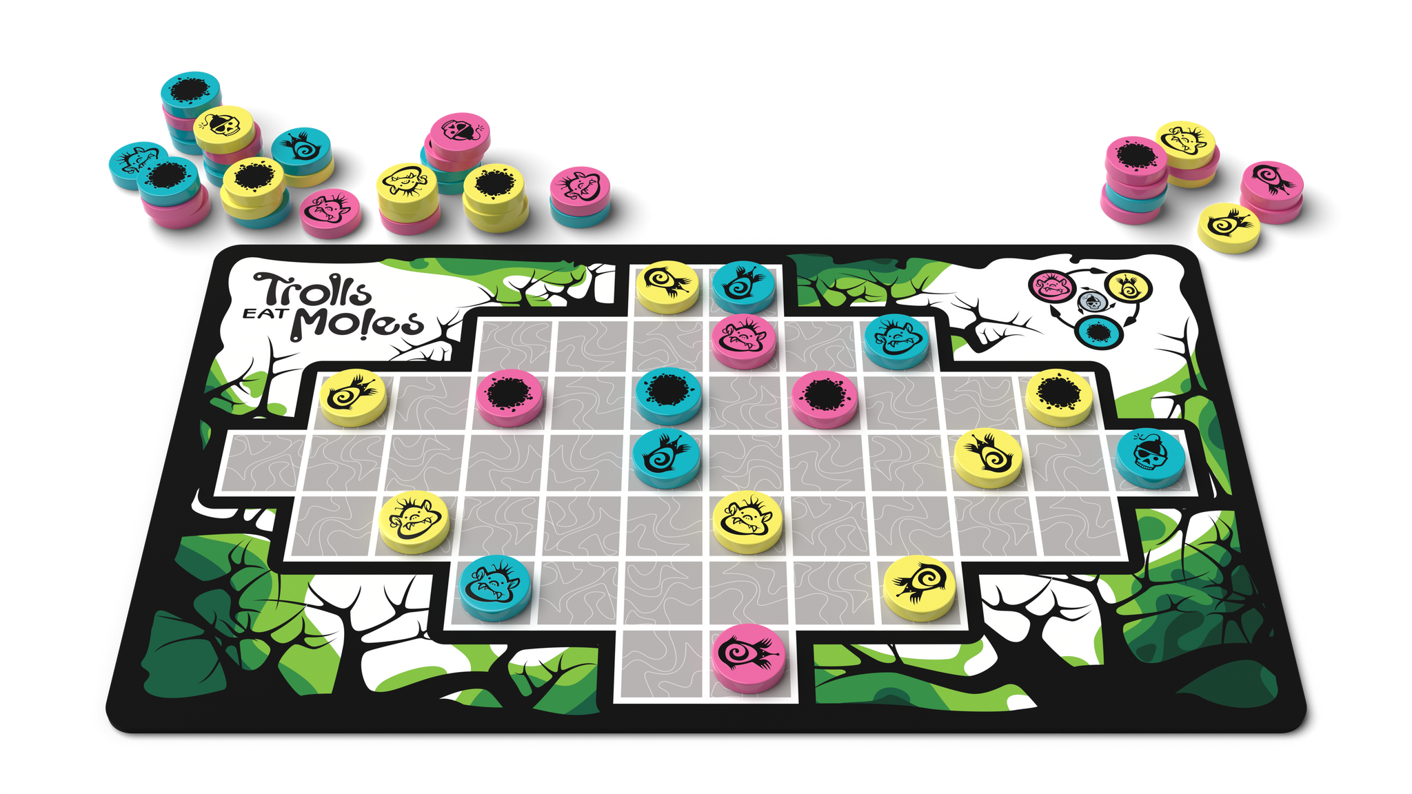 Trolls: Trolls eat Moles and can ONLY capture Moles. Each player has 6 Trolls.
