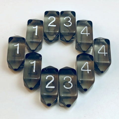 Our popular d4 shape in beautiful translucent crystals are easy to pick up and beautiful to see. Remember, if you step on our d4 you won't have to be rushed to the emergency room!