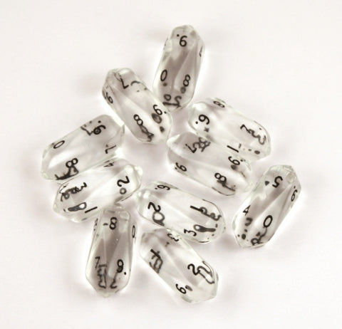 Our popular d10 shape in beautiful translucent crystals are wonderful to the touch and beautiful to see.