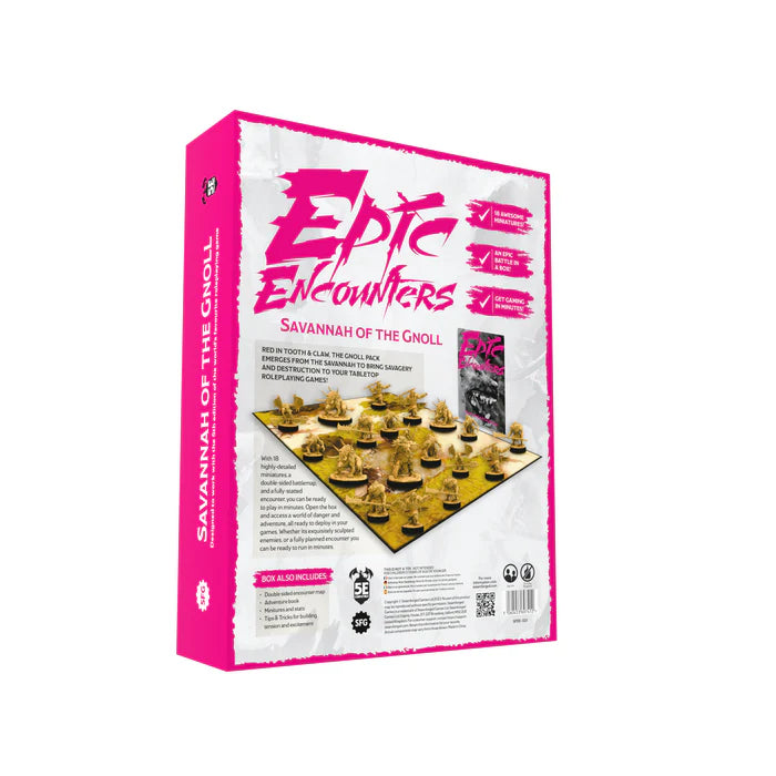 Can you survive the savannah? Use this set as a standalone encounter or drop it into any roleplaying campaign. Feeling brave? Check out the compatible Rage of the Gnoll Warseeker boss box!