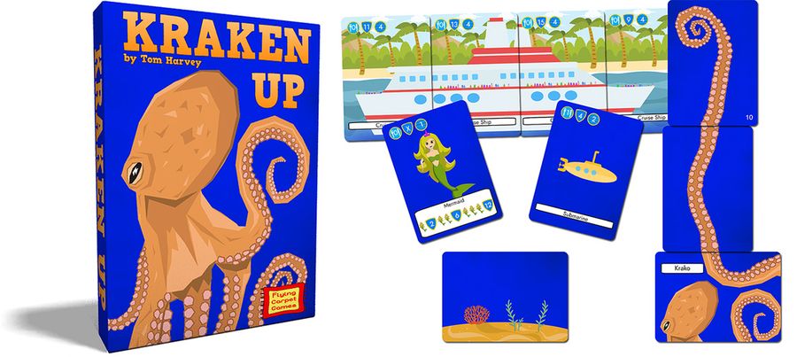It's the Krakens' turn to fish for humans! Players will grow their Kraken's tentacles and reel in bounty to form scoring combinations.