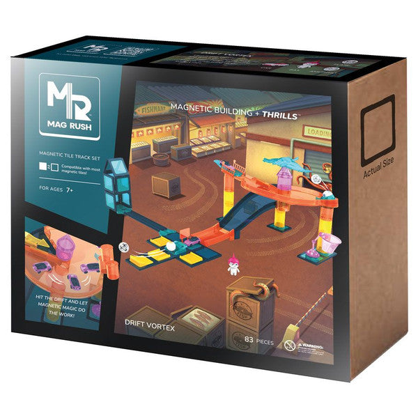 Mag Rush flips the script on magnetic tiles, swapping basic builds for bold action. Think magnetic tiles but cooler, with track play, stunts, and challenges that bring action to your builds. Compatible with other magnetic tiles (because we’re team players like that), Mag Rush cranks up the excitement with drift-worthy tracks, knockdown tricks, and builds that don’t just sit there, they move, crash, and wow.