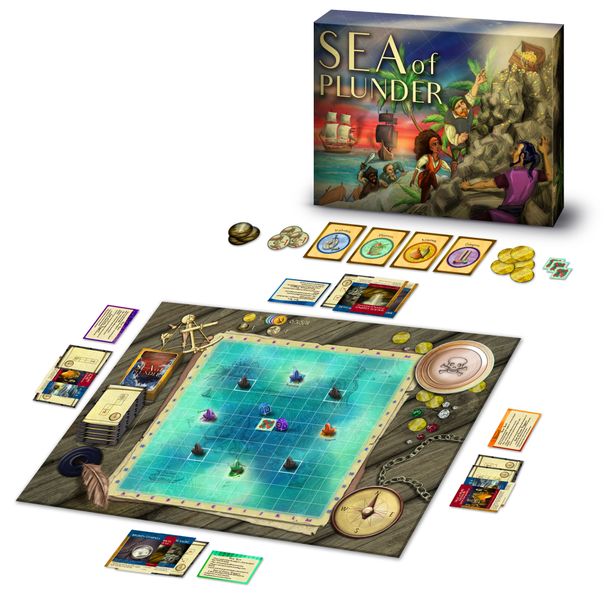 Sea of Plunder is a light weight strategy game about treasure hunting in which you are a merchant ship sailing across the endless sea, racing to get to mysterious treasure islands while at the same time gathering goods from port cities,dodging pirates, getting pushed around by hurricanes, and stealing cargo from the other merchants/treasure hunters!