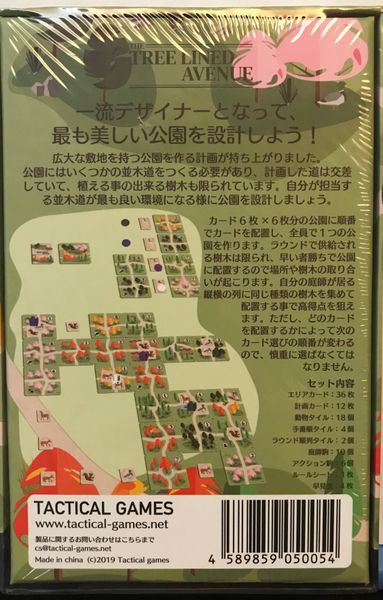 Players take turns choosing trees and placing them to build a park in a 6x6 grid. As the trees provided in each round are limited, players fight over them. Higher points can be achieved by collecting the same type of trees on the rows and columns on which your gardeners stand. Choose your trees wisely, as it affects your turn order in the next round.