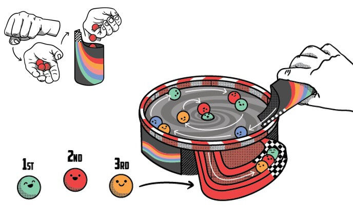Great table centrepiece. It’s as exciting to watch in action as it is to play. Addictively simple. Gets the balance between luck and skill just right, so it’s super-easy to learn but rewarding to play. Advanced rules add an extra level of skill, luck and venom with the advanced rules.